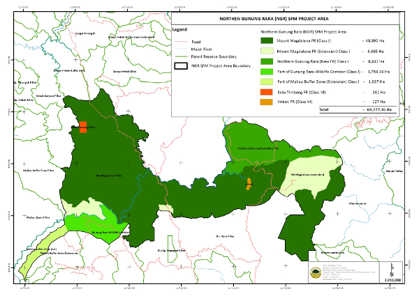 Recently Gunung Rara FR (Class 2) are newly regazzetted to (Class 1) FR which is known as Northern Gunung Rara FR with a total of 8,443 Ha. This additional area are new included in the NGR-SFM project.