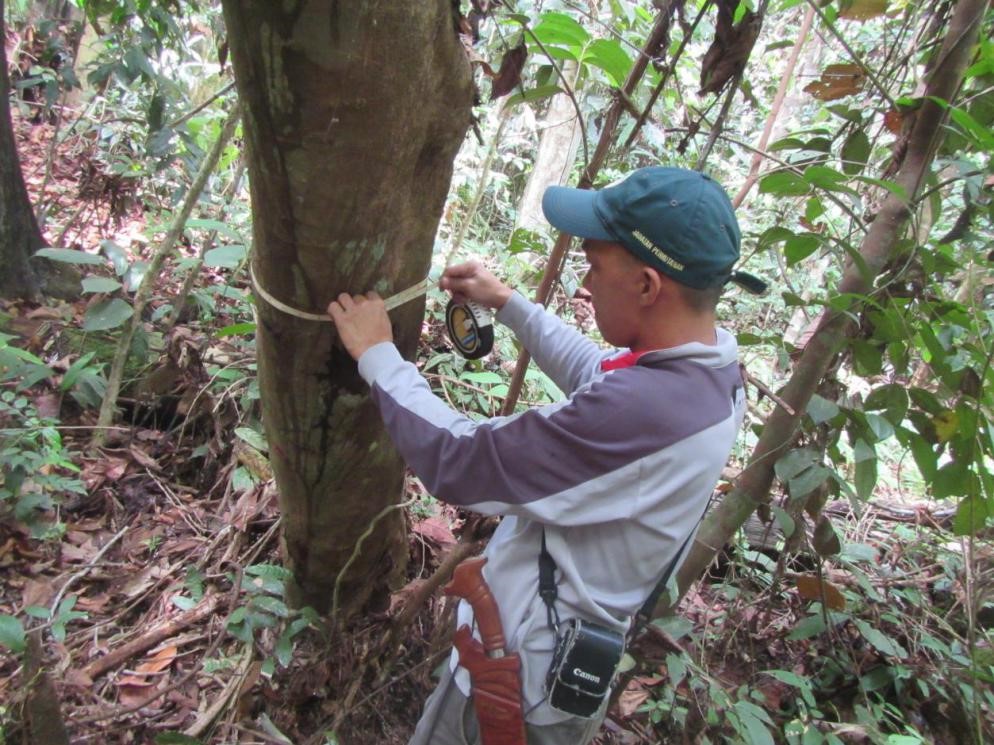 | Re-measurement and Maintenance of PSP Plots by NGR SFM Unit (7.5.2017) | Re-measurement of PSP Plots and identifying tree species by FRC Sepilok (23.3.2018) |