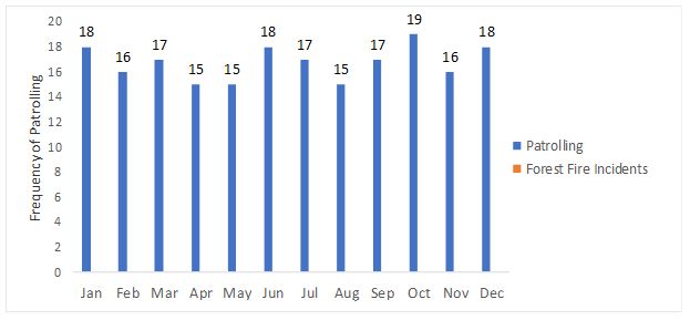 Figure 1: Frequency of patrolling and forest fire incidents within Ulu Segama-Malua SFM area in 2018