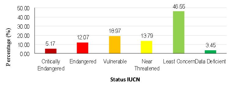 Figure 4: Percentage (%) of wildlife species (terrestrial mammals) recorded in accordance to three (3) criteria under IUCN red list, the numbers based on wildlife monitoring activities carried out in year 2017